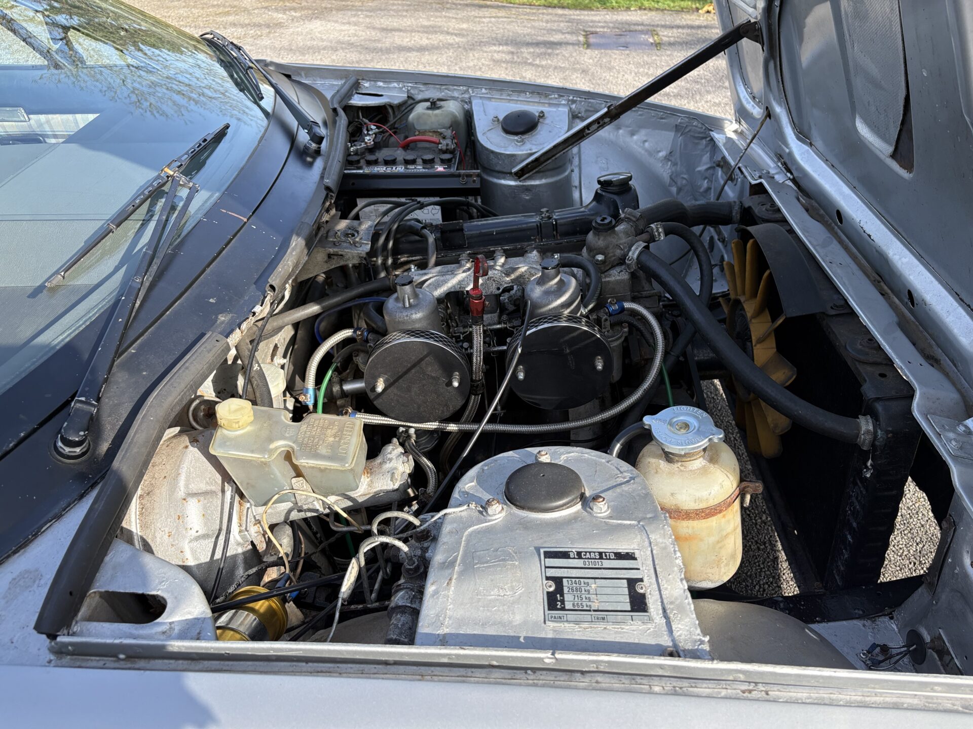 This particular example presents well with silver paintwork and newly replaced, correct check upholstery in blue with matching blue hood and hood cover.